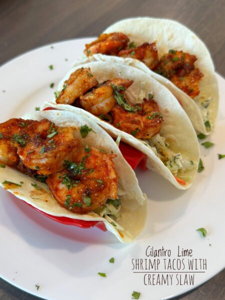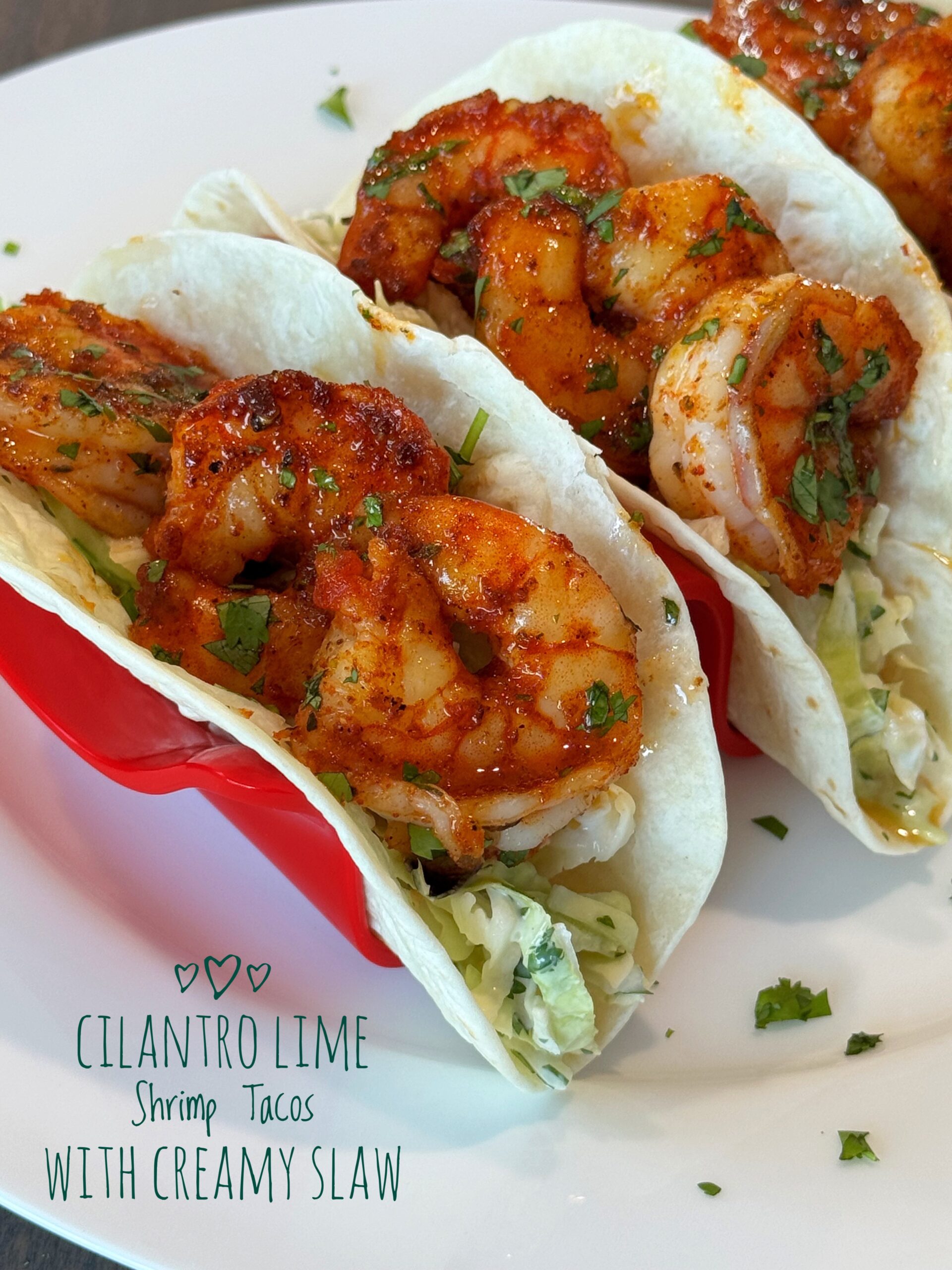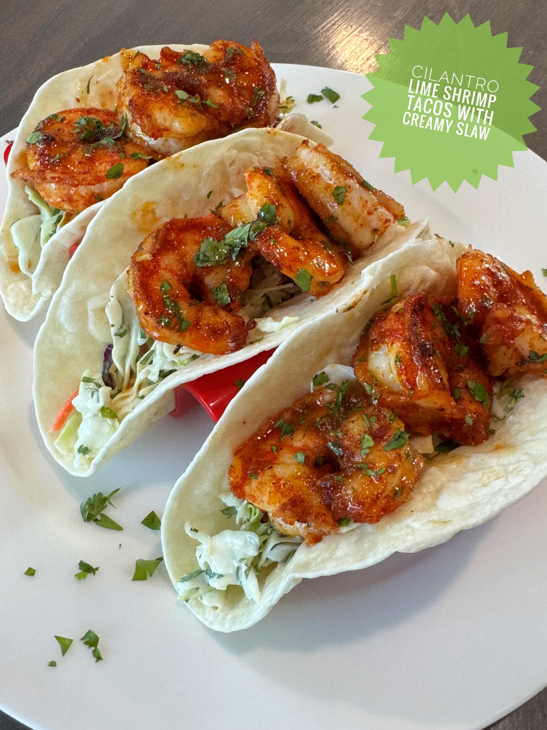 Cilantro Lime Shrimp Tacos with Creamy Slaw