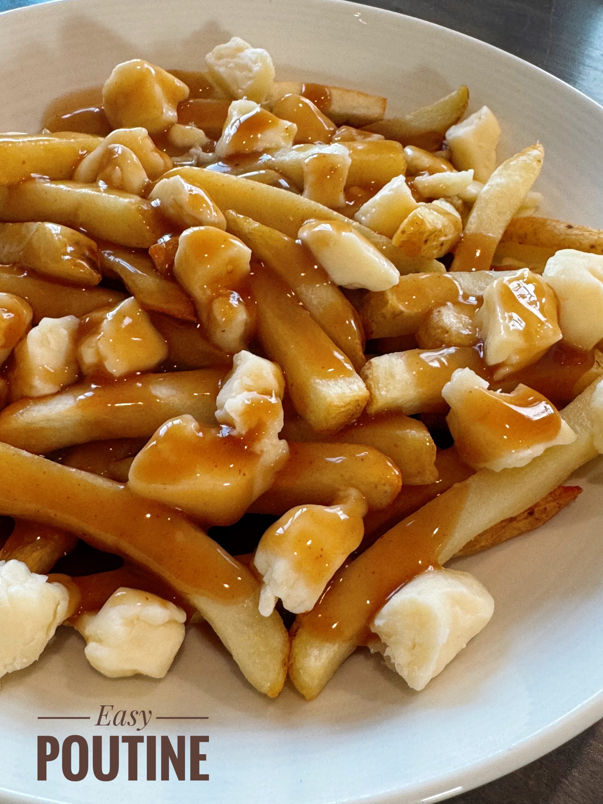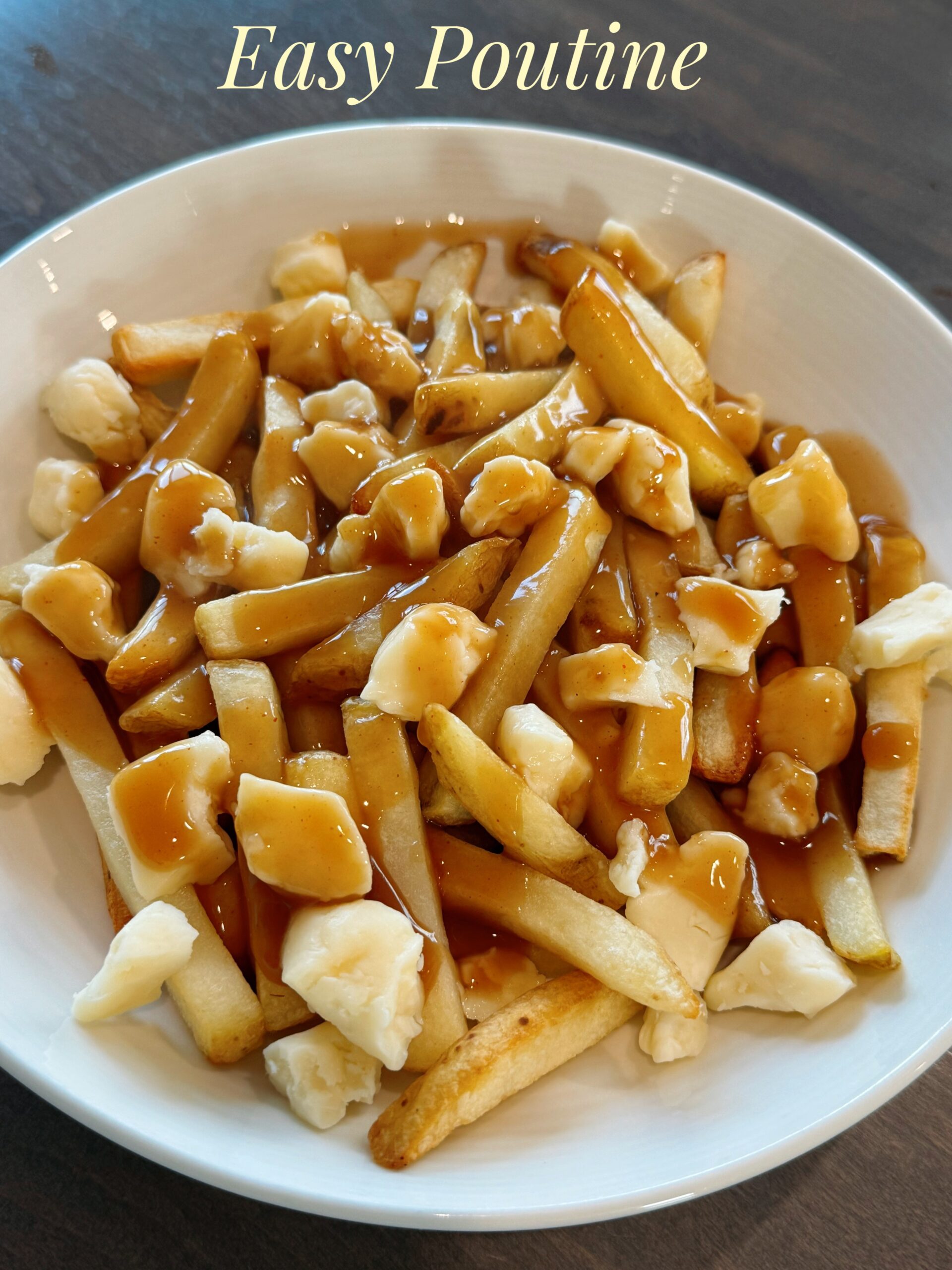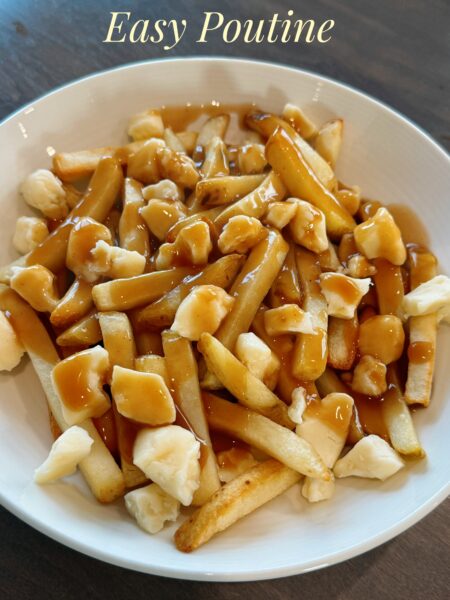 This shouldn’t even count as a recipe. My French family will disown me when they see this LOL. This is how we (not Canadians per se lol but MY family) make Easy Poutine when we are craving this delicious comfort dish that is the ultimate guilty pleasure. Don’t get me wrong, the BEST (in my opinion) poutine is made with PEI potatoes cut into thick fries and deep fried with a rich gravy made with Alberta AAA beef drippings and the freshest squeaky cheese from our Armstrong BC Dairy. DROOL! I mean, this will do in a pinch, like SBean will eat McDonalds poutine and I will even use shredded cheese if we are out of curds… but I don’t call that poutine, then it is just fries with gravy and cheese lol. I’m not THAT west coast lol.