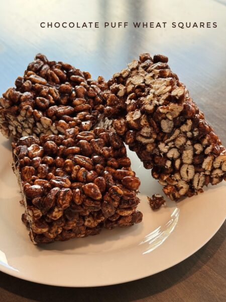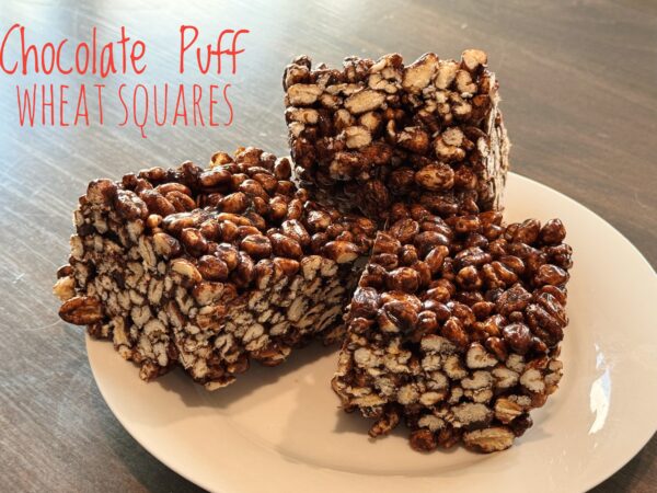 HBear’s favourite treat as a young child was puffed wheat. Just plain, dry puffed wheat. I used to have little containers of puffed wheat in every bag to give her for snack time. As she got older, we would go to the Penticton Farmer’s Market every Saturday morning and she would get a Chocolate Puff Wheat Square. I was hard to go back to plain puffed wheat after that! LOL. Now, I make them for her lunch and she still loves them just as much as she did when she was little! This classic Canadian treat was invented in Red Deer in a candy shop called A.J. Russell and is just as popular in Canada as rice crispy treats are in The States. FYI Did you know Canadians are the only people in the world that call the USA, The States? It’s true, the colloquial term is only used by America’s neighbours to the north. Huh!