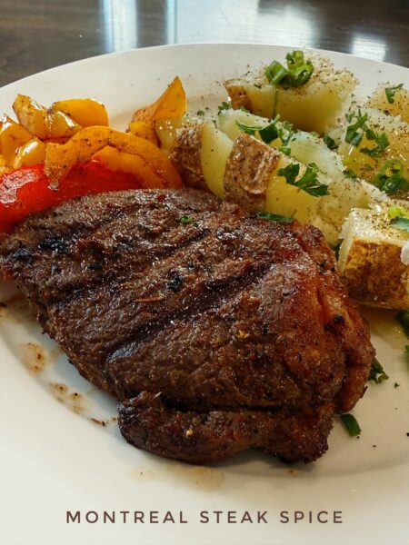 Ninja LOVES Montreal Steak Spice. I do too but Ninja LOVES it. This spice blend is based on the pickling spices of Eastern European and Jewish cuisine. The spice blend also goes by the names Canadian Steak Spice and Canadian Steak Seasoning. This spice blend can be added to any meat. I love it in a marinade and added to BBQ chicken too. I have included the ingredients to make the blend AND the directions on how to make a marinade with this yummy spice blend.