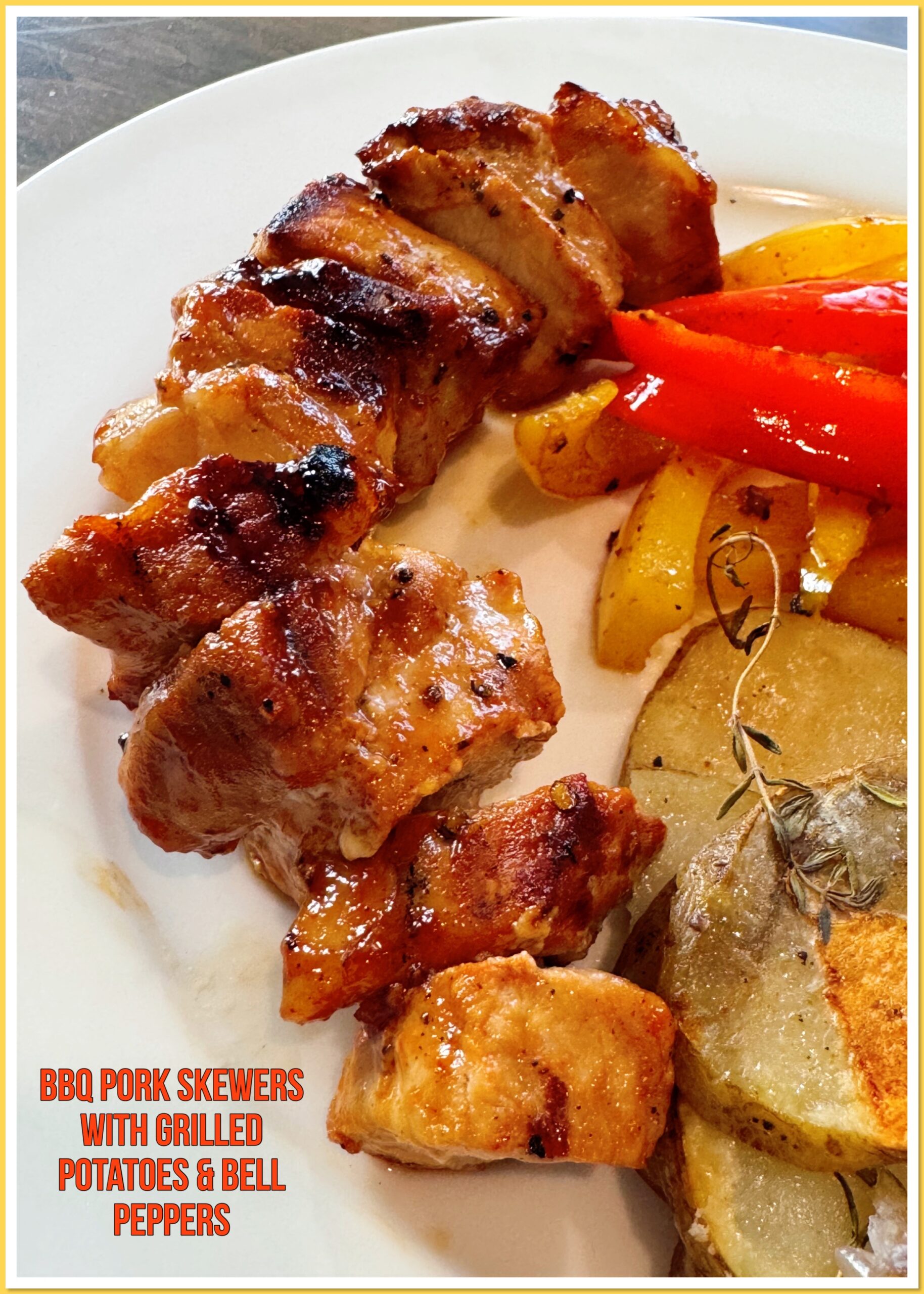 Monday: BBQ Pork Skewers with Grilled Potatoes & Bell Peppers