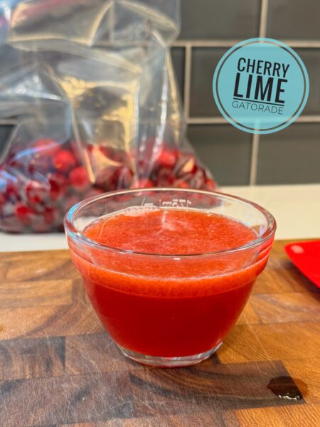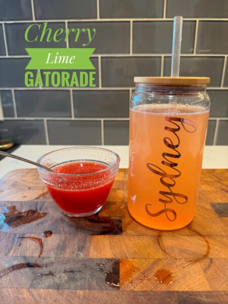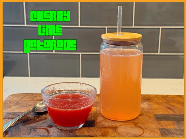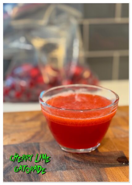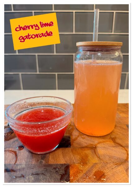 Like I said, I don’t like flavoured drinks. I’m not a pop gal, I don’t really like juice, and flavoured water is an absolute no for me, Dawg. Ninja and the Kids, however, enjoy a Gatorade or a squirt of Mio in their water, especially in the summer when the temperatures are scorching like they are right now! So many of those products have aspartame in them though and aspartame and MS don’t mix. We try to stay away from it as much as possible. So, I made this alternative, Cherry Lime Gatorade! Using a few simple ingredients my family had a more natural alternative electrolyte flavouring for their water. I feel good knowing they aren’t adding crap to their water and they feel good drinking yummy cherry lime, flavoured water.