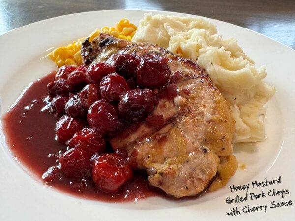 Honey Mustard Grilled Pork Chops with Cherry Sauce