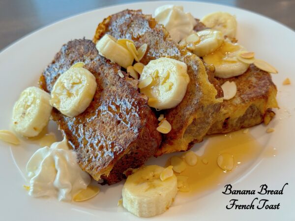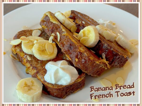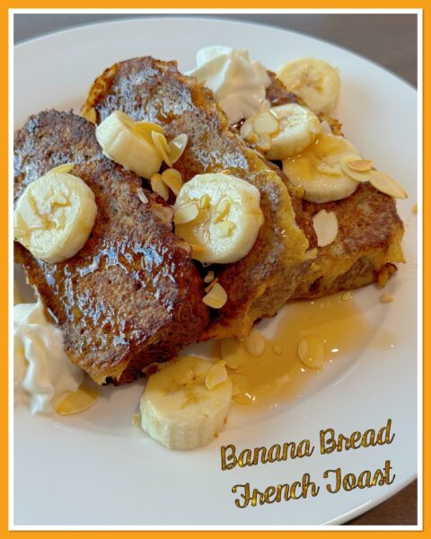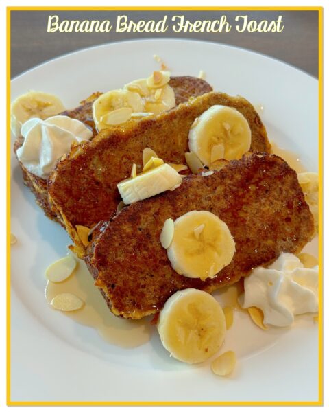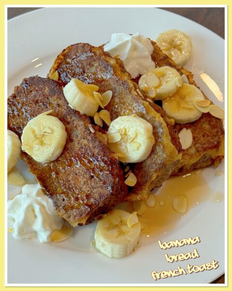 Like I said above, bananas remind me of school and comfort. To send the kids off to school with a full belly you can make this Banana Bread French Toast that my Kids LOVED. Actually I did too! We used My Go-To Banana Bread Recipe, which I posted below and added whipped cream, toasted almonds, and maple syrup to kick off HBear’s last first day of school 😭.