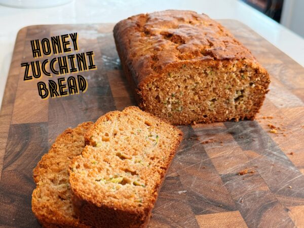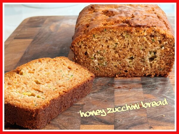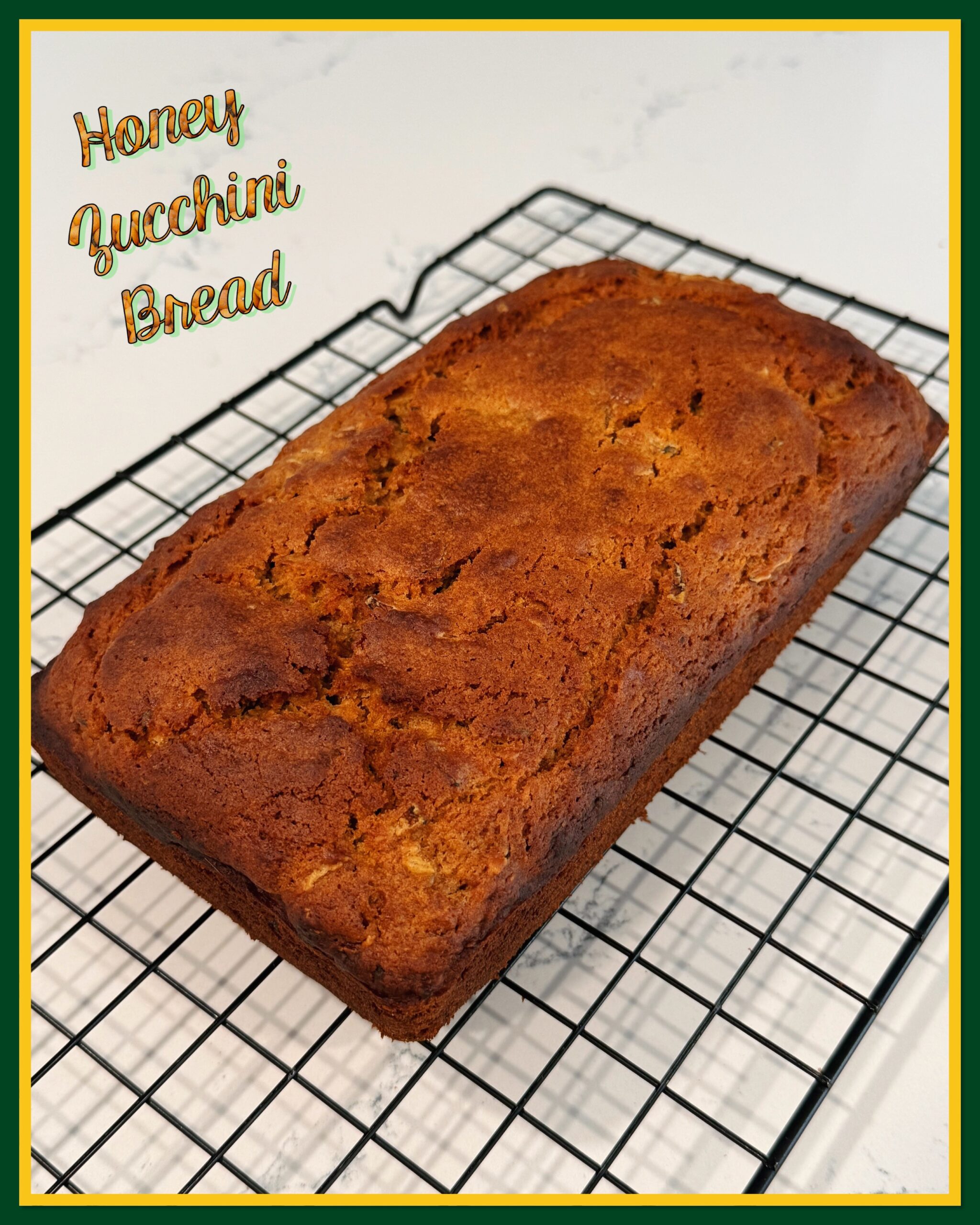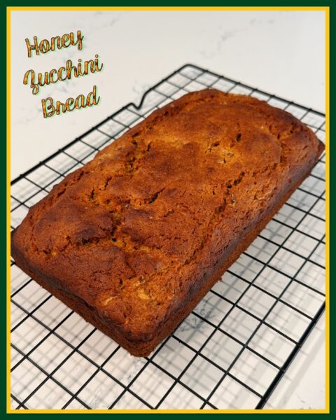It’s zucchini season! I usually like to make chocolate zucchini baked goods but I felt the other treats were already pretty sweet so we went with this Honey Zucchini Bread instead. It is moist, subtlety spicy with a hint of sweetness. Absolutely delicious!