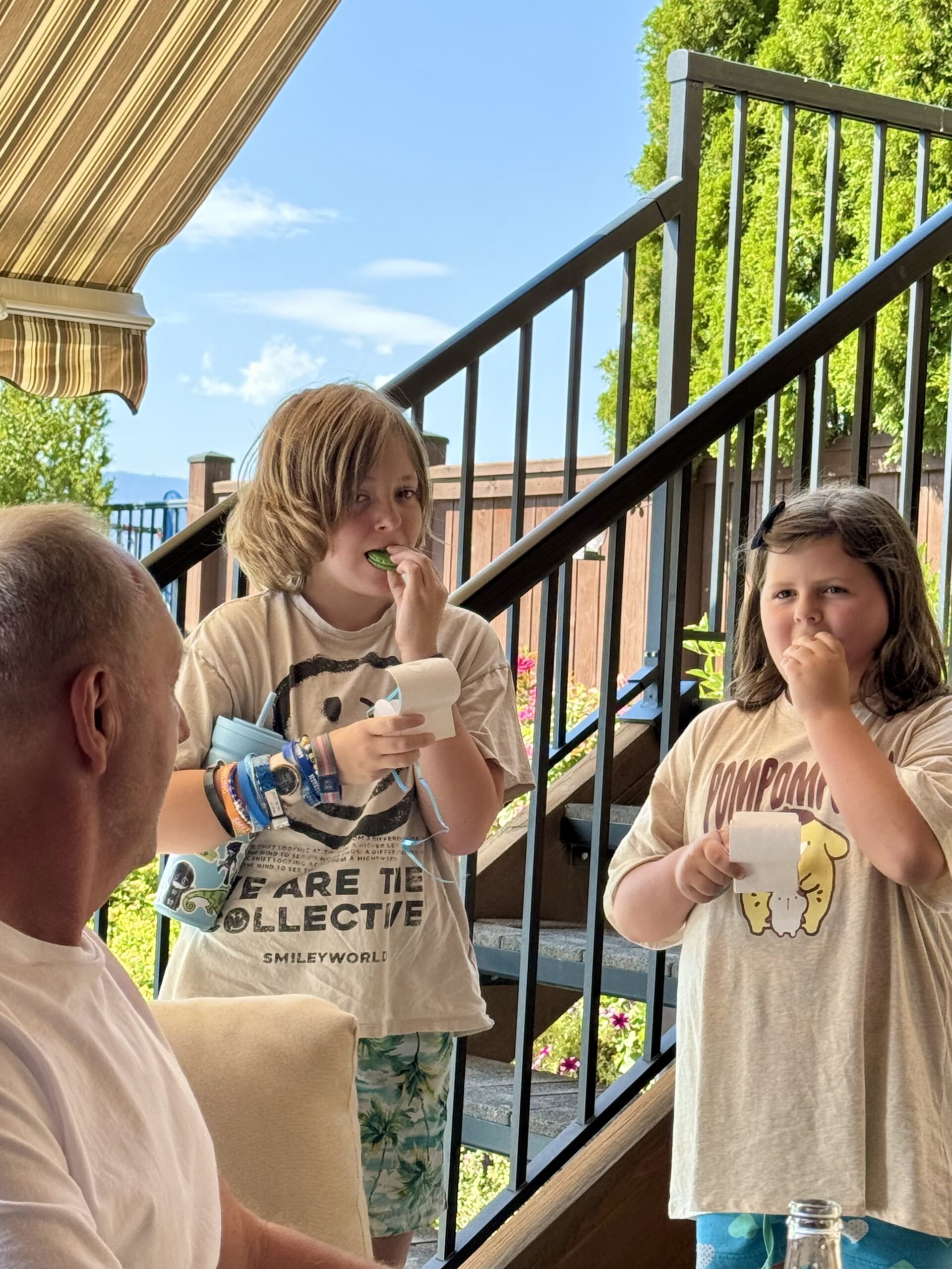 This week I had Dr appointments and I recovered from our trip by going through so many pictures!! The Kids went to Movie in the Park with Papa, got haircuts, ate Brooklyn Pizza, and went shopping for school clothes and supplies. We all celebrated the end of summer at Grandma and Grandpa’s by the pool with the whole family and with dinner at Orolo followed by the new Naked Gun movie! I am grateful to have had a summer not spent in bed but actually enjoying most of the activities we had planned. Today the Kids are back to school and Ninja and I are celebrating our 16th anniversary of moving to Penticton! 16 years ago today!