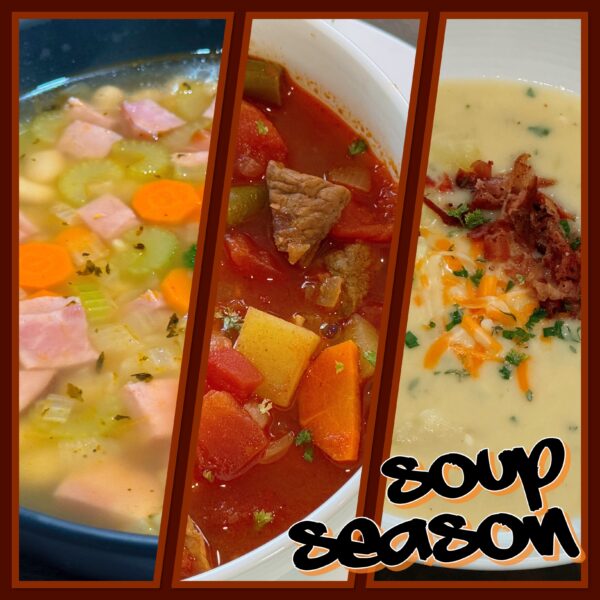 On Wednesdays we wear pink and on Thursday, we eat soup! HA HA no for real, we do. Thursday is our day of craziness. It starts early as both the Kids are in early morning jazz band (at different high schools), then after school the Kids have robotics, curling, hip hop, gymnastics, work and saxophone lessons. Every Thursday night from 3:30-9:00 the Kids are in and out of the house and Ninja is dropping Kids off at their respective commitments (my eyes don’t let me drive at night any more, thanks MS). So, we try to have a pot of soup on the stove for everyone to have either in a thermos or in a bowl on the way to the dance studio lol. These are some of our favourites so far this soup season.