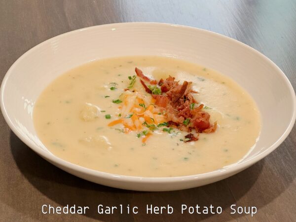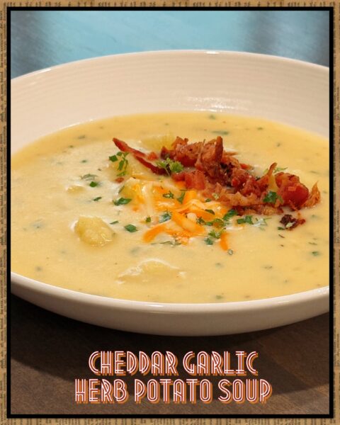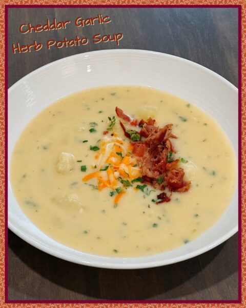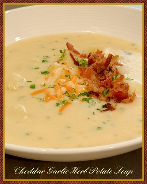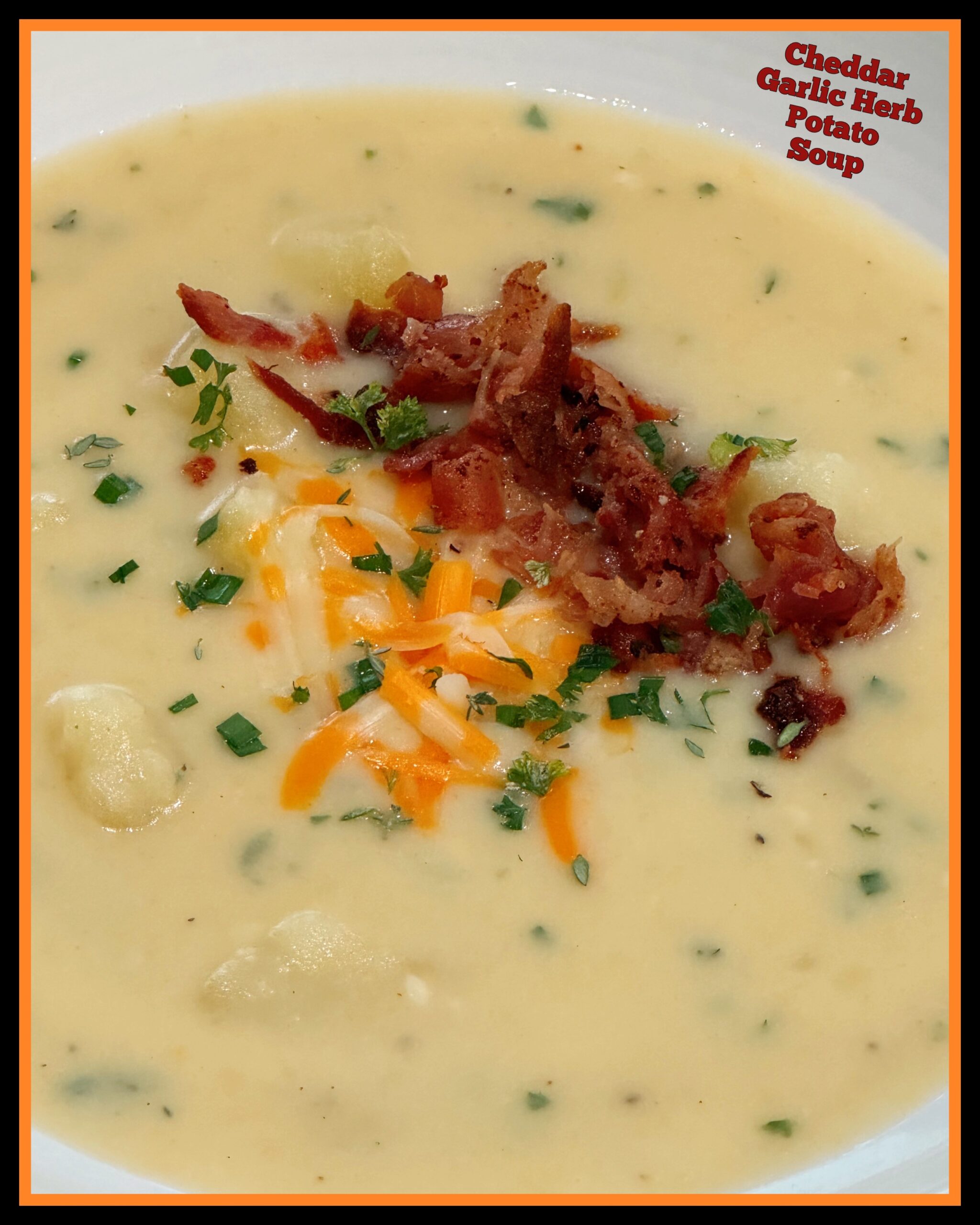 SBean is going to turn into a potato. LOL or at least that’s what we always say to her. She will come home and make herself a baked potato. She wakes up and makes herself a baked potato. Everywhere we go to eat she asks for poutine or a plate of mashed potatoes. I know, it’s weird. She may love potatoes but she does NOT like soup. So I got a little sneaky and we made this delicious Cheddar Garlic Herb Potato Soup and she LOVED it! Winner winner, soup for dinner!