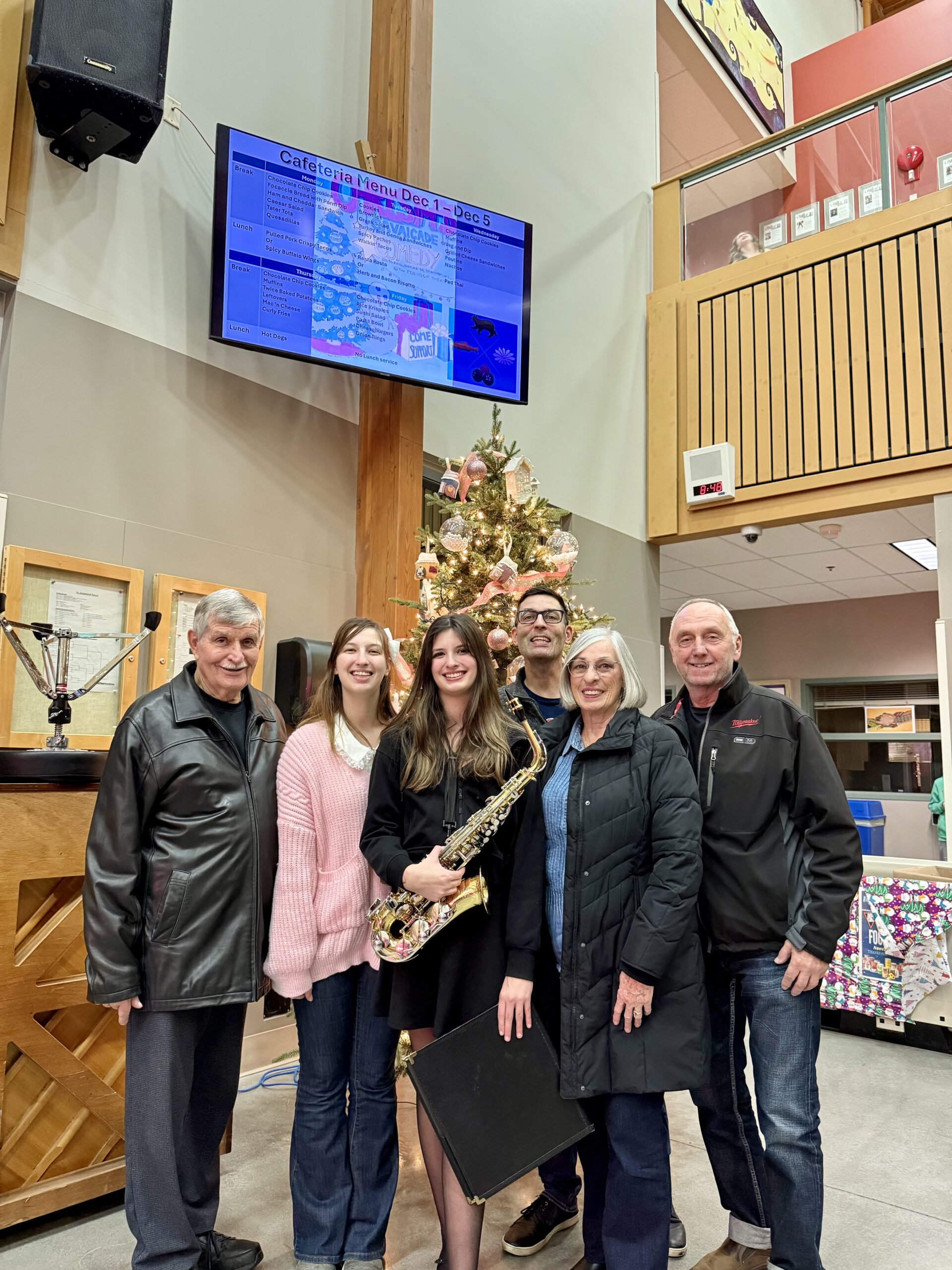 This was a BUSY week. I am learning that I have to opt out of some things to enjoy other things during this hectic season. Maynard our Elf returned on Monday which was also HBear’s birthday AND SBean’s jazz band concert. SBean filmed another video with her Performing Arts Group the same evening as HBear’s jazz band dinner and show concert and they recorded the audio for the video the same day as SBean’s first gymnastics competition! After the competition they went to The Keg to celebrate with Grandma and Grandpa!