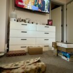 • Cut ribbon or crepe paper or washi tape the same length as the width of your bedroom door. Cut 2 more pieces 1/4 of the width of the door.